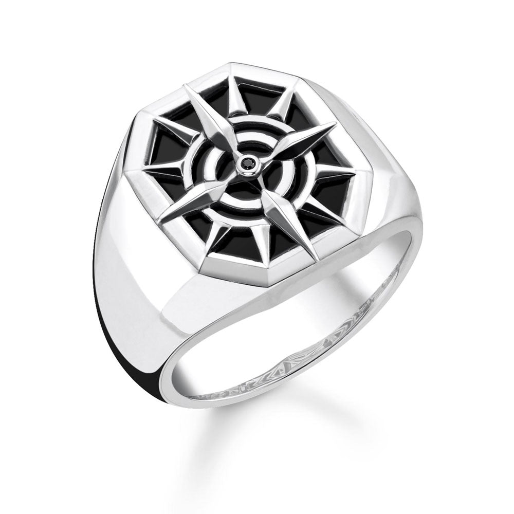 Thomas Sabo Sterling Silver Black Onyx Compass Signet Ring