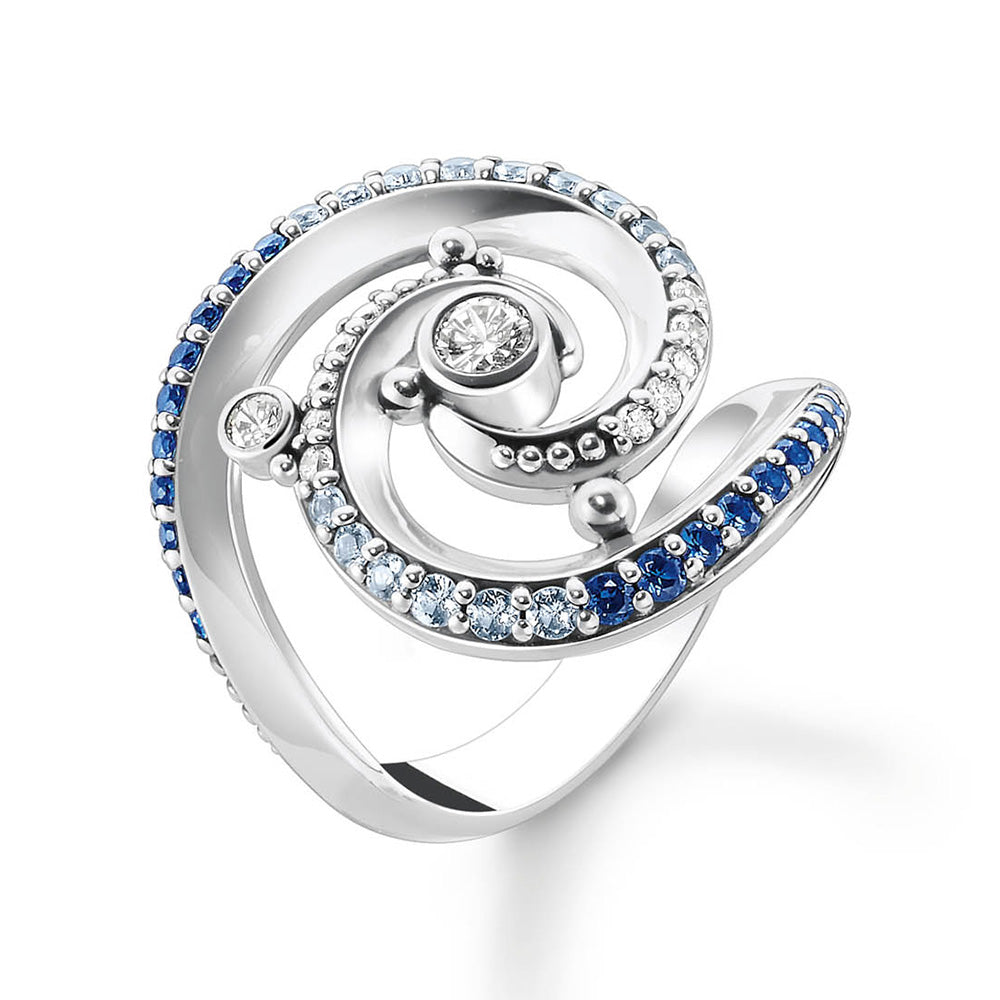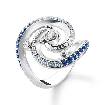 Thomas Sabo Sterling Silver Ocean Curled Wave Blue Cubic Zirconia Ring