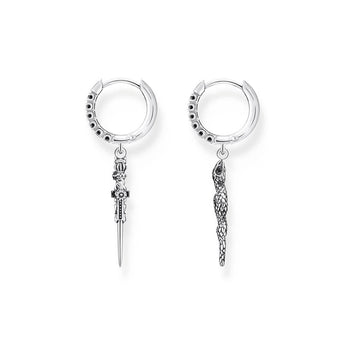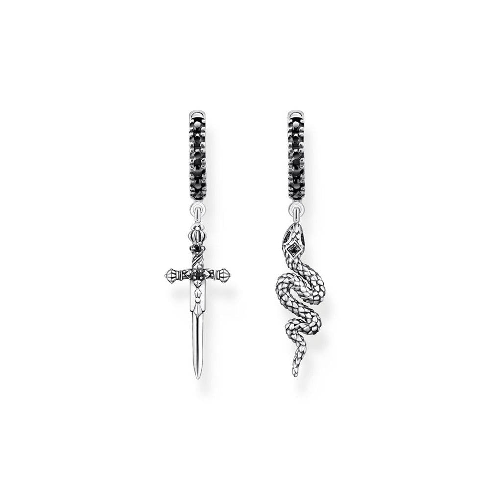 Thomas Sabo Sterling Silver Rebel Snake And Sword Black CZ Mismatch Earrings