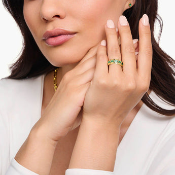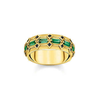 Thomas Sabo Yellow Gold Plated Crocodile Rock Green Wide Ring