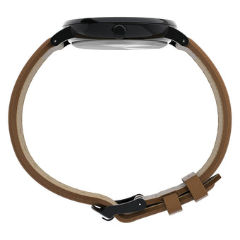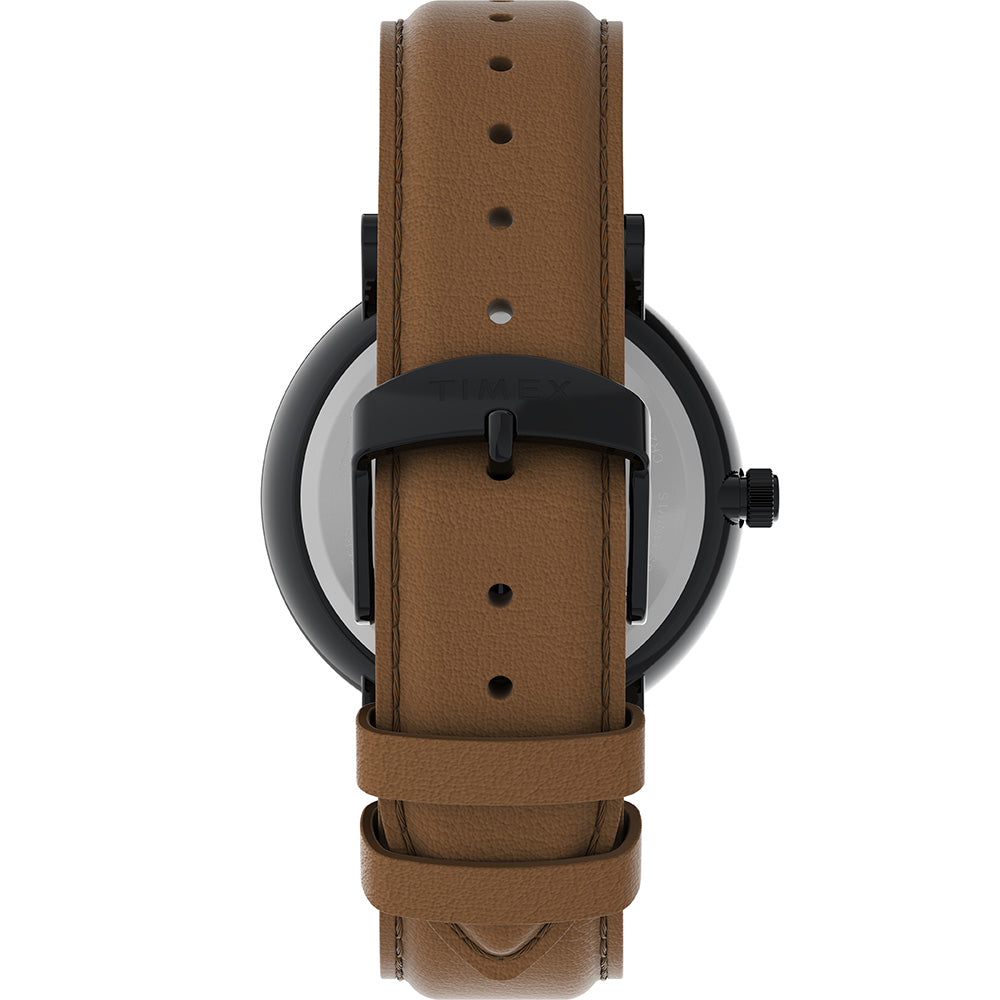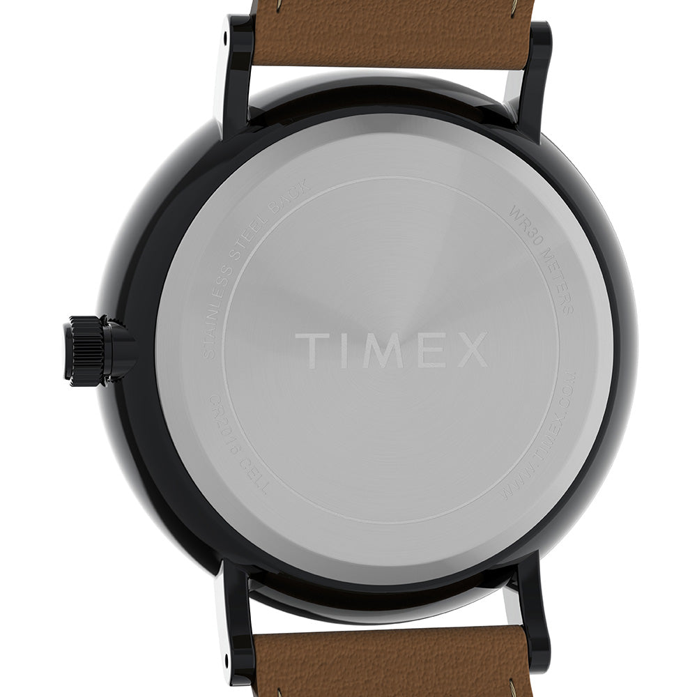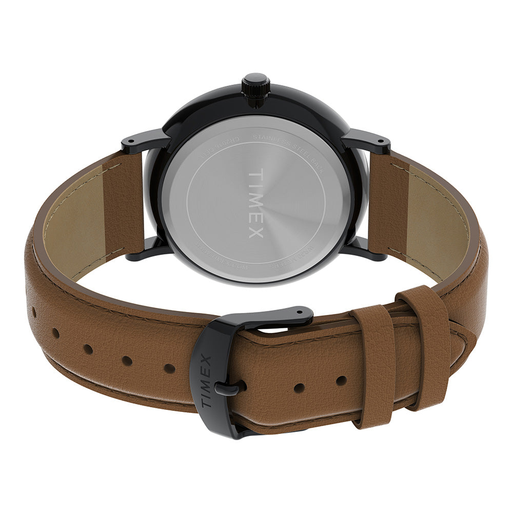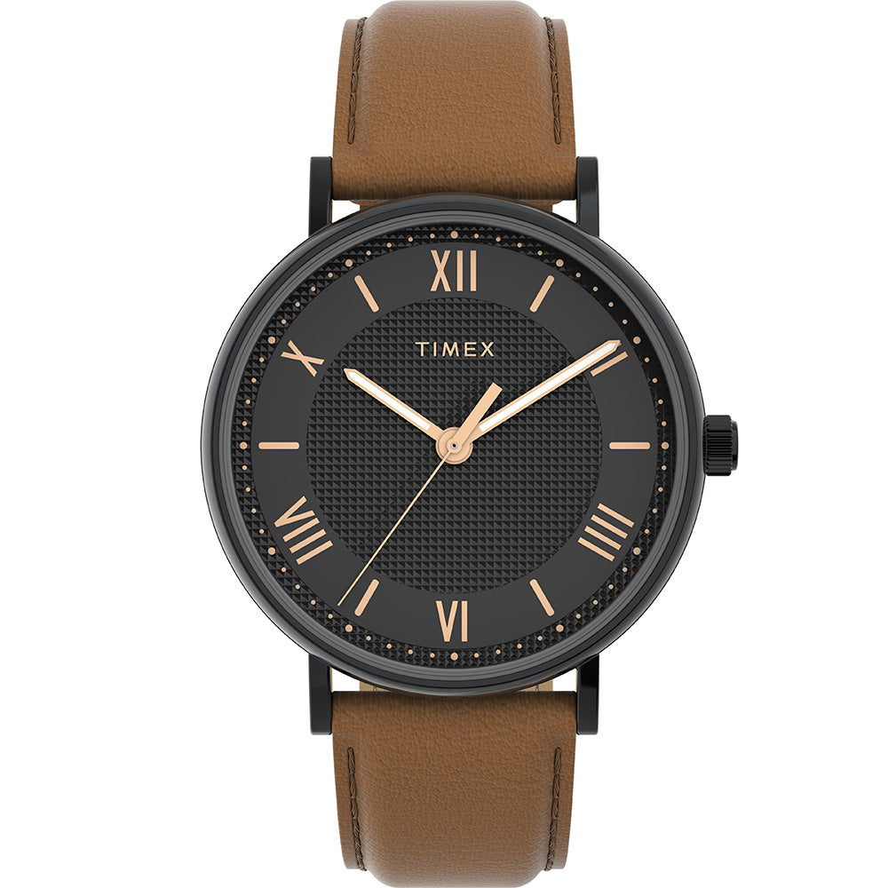 Introducing this timeless Timex watch, crafted with a sleek 41mm leather case and a striking black dial, powered by precise quartz movement. Designed for both style and practicality, it boasts a 50-meter water resistance and a convenient date window. Embrace the perfect combination of precision timekeeping and stylish comfort with this classic piece, ideal for any occasion.