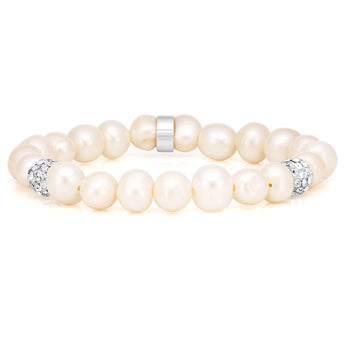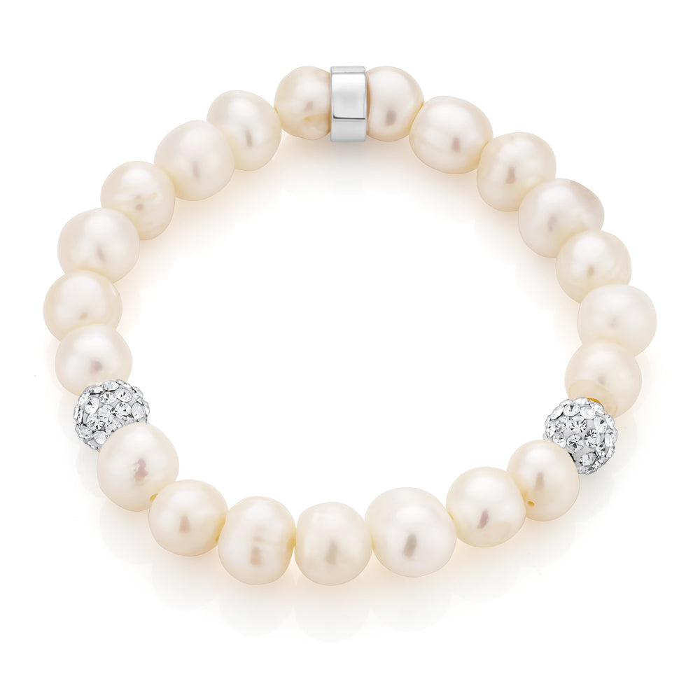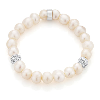 White 8-8.5mm Freshwater Pearl, Crystal and Charm Bracelet