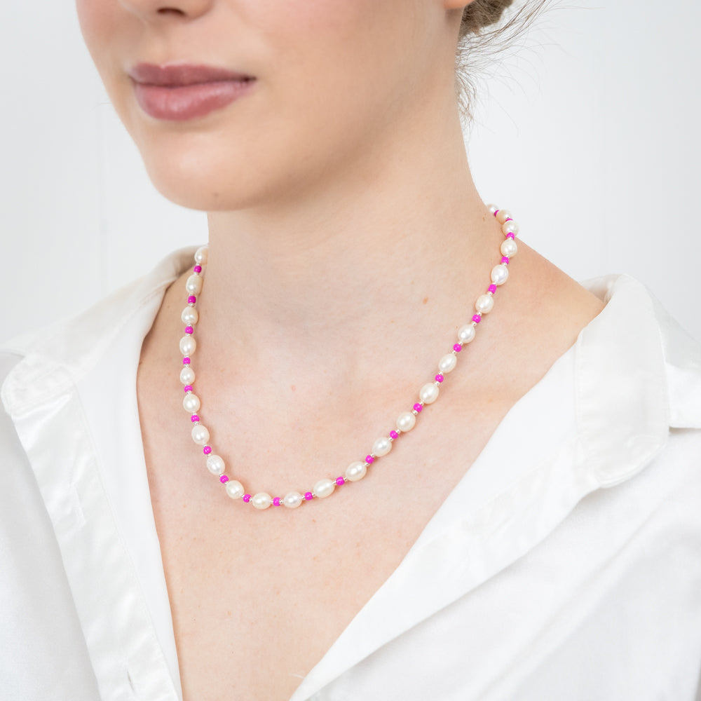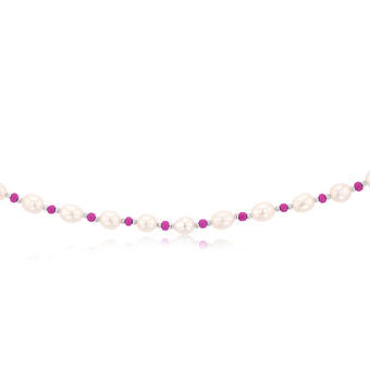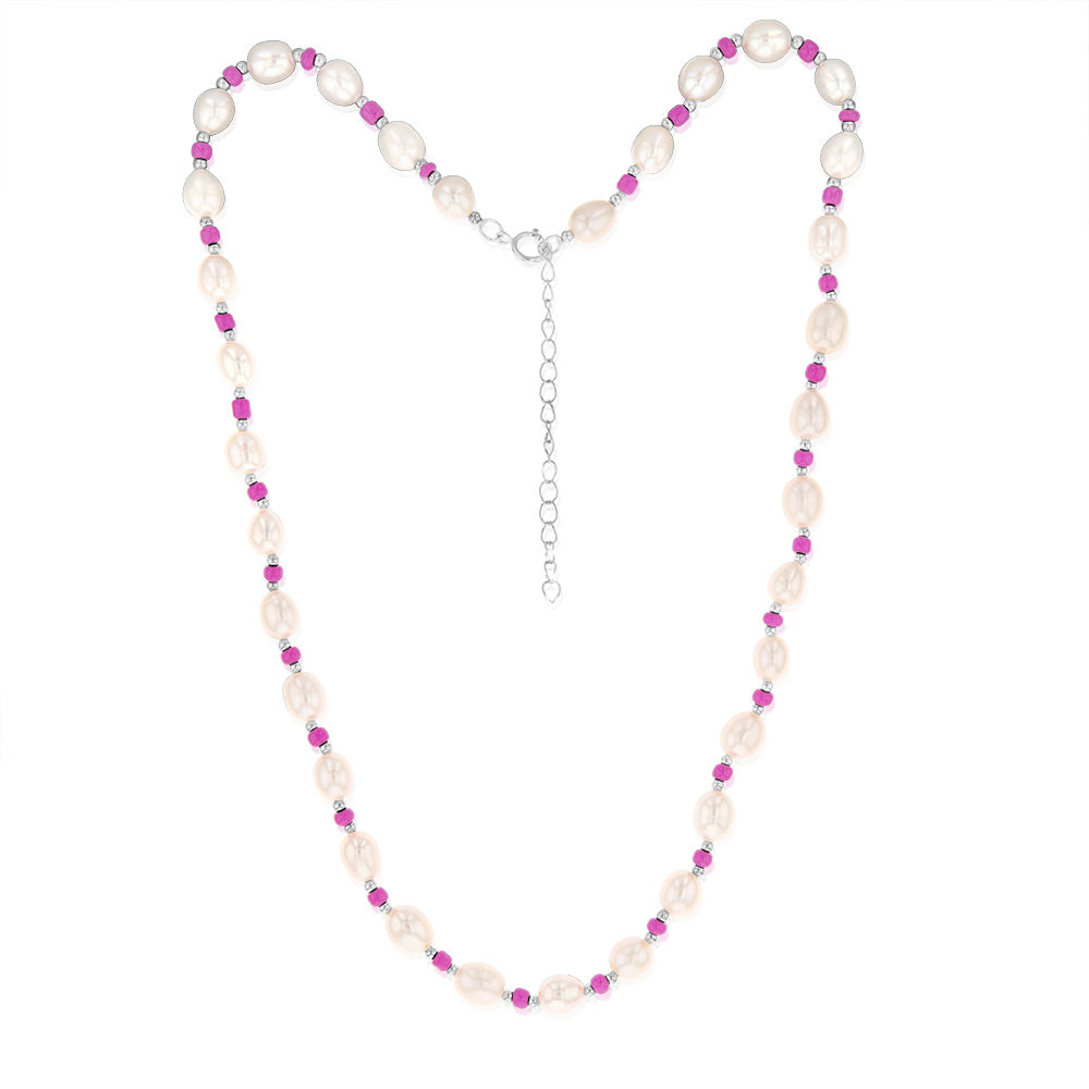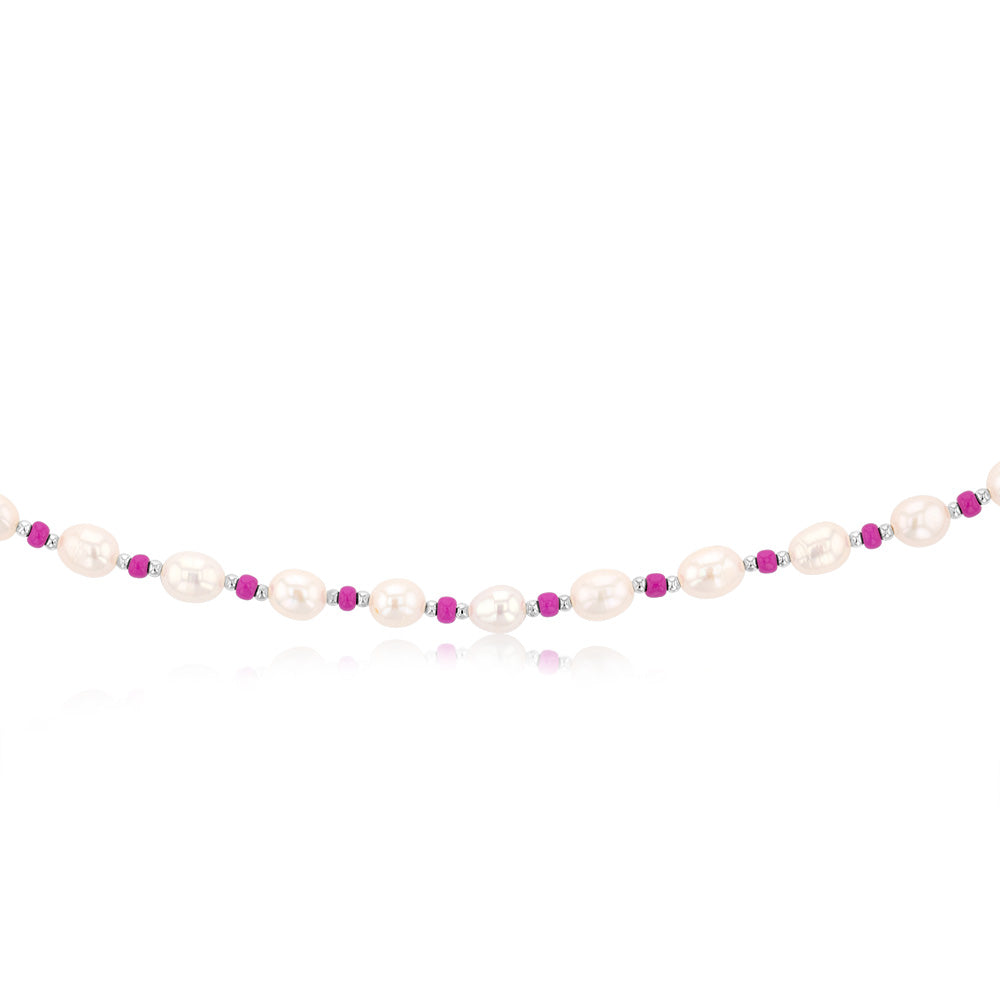 White Freshwater Pearl Chain with Pink & Silver Beads in Sterling Silver