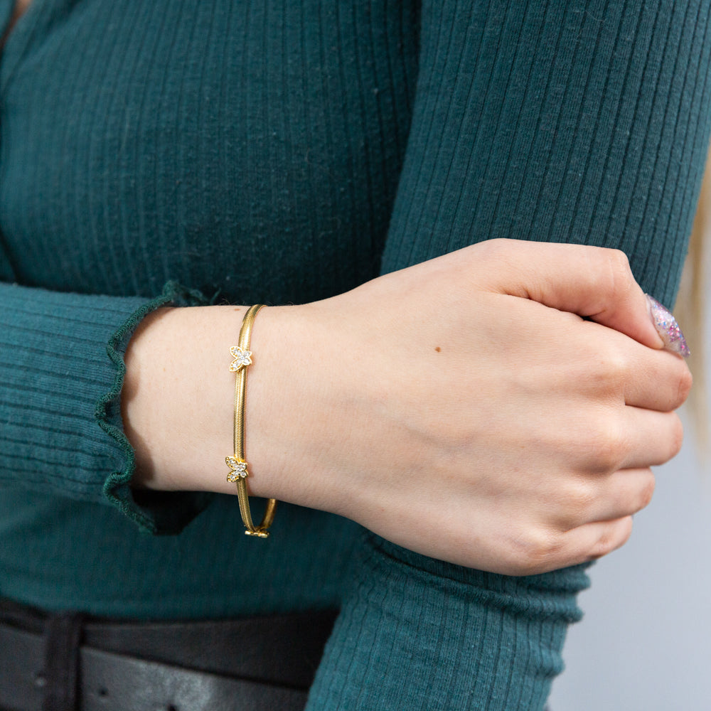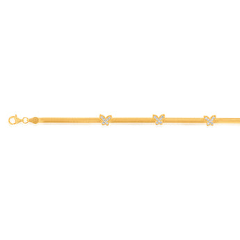 Yellow Gold Plated Sterling Silver Cubic Zirconia On Butterfly 19cm Bracelet