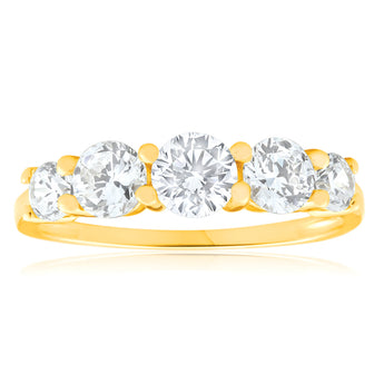 Zirconia 5 Stone Graduated Ring in 9ct Yellow Gold