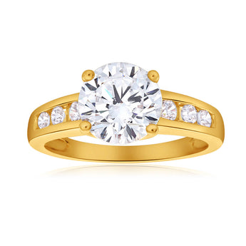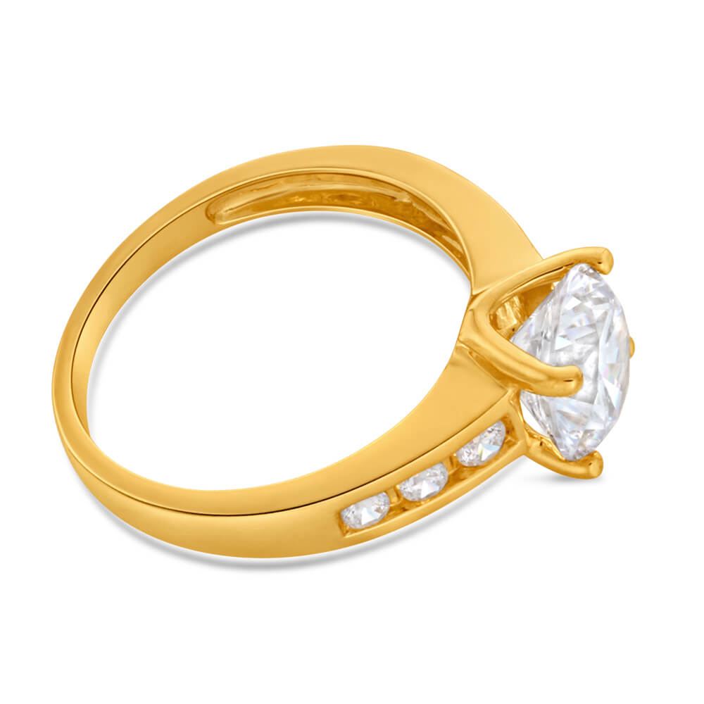 Zirconia Ring wtih 6 Channel Set Side Zirconias in 9ct Yellow Gold