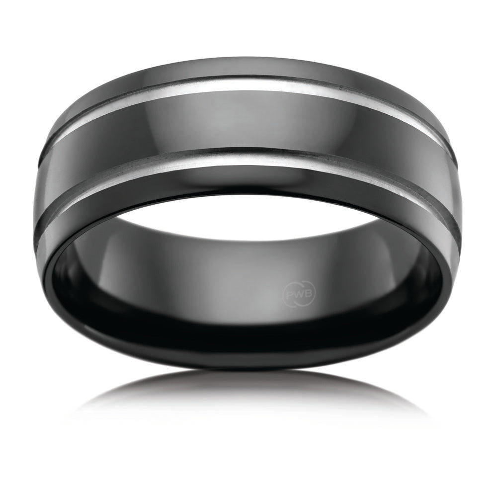Zirconium 8mm Gents Ring 2 Grooves. Size U.
